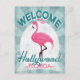 Flórida de Hollywood rosa flamingo. No estilo poster, diz "Bem-vindo a Hollywood, Flórida" em turquesa verde rosa, branca e menta.