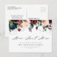 Anuncie sua nova casa à família e amigos com este cartão-postal moderno com roteiro e flores azuis e marinhos.