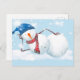 Cartão de boneco de neve. Este cartão-postal é perfeito para a travessia e pode ser usado em muitas ocasiões. Visite nossa loja para outros cartões postais incríveis.