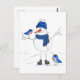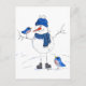 Esta é uma pintura mestiça original de um boneco de neve de pernas compridas com dois pássaros azuis.