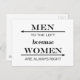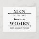 Cartão Postal Homens para a esquerda porque as mulheres são semp