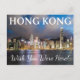 Cartão-postal da linha do horizonte de Hong Kong com as palavras "Desejo que Estivesses aqui"