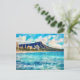 A praia de Waikiki, em Honolulu, no Havaí, é conhecida pela sua bela areia branca, águas claras e azuis, e pelas incríveis visões da Cabeça de Diamante. Este cartão postal de arte havaiana faz parte de uma série de cartões postais criados no estilo de arte do posto-impressionismo e é inspirado por diferentes locais ao redor do mundo.