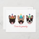 Cartão Postal Hora de Festa do Bulldog Francês Chapéus Vermelhos