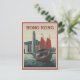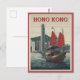 Qualquer pessoa adoraria receber este cartão postal de viagem antigo com uma ilustração retrô do horizonte da cidade de Hong Kong e do porto!