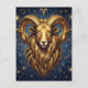 A mystical golden Ram Aries Astrology sign postcard with Aries traits on the back.