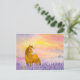 This hand painted watercolor postcard features a gentle cognac brown horse standing quietly in a soft lavender field beneath a glowing sunset sky. Created with calming color, open space, and delicate detail, this peaceful equestrian design captures the quiet beauty of horse and landscape. A lovely choice for horse lovers, nature enthusiasts, and anyone who appreciates serene watercolor artwork.