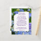 Este belo cartão postal de hortênsias azuis vem com um pequeno poema e um versículo da Bíblia "Dou graças a meu Deus cada vez que me lembro de vocês" Filipenses 3:1 Mostre a um querido amigo o quanto você o aprecia, e agradeça a Deus pela ajuda, bondade e amizade dele, com este lindo cartão postal. No verso, um ramo de flores com borboleta. É fácil removê-los se desejar, ou alterar o texto para se adequar a outras ocasiões e situações.