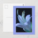 Este cartão postal floral apresenta uma fotografia ornamentada e aproximada de uma flor de Hosta, destacando a delicada elegância de suas pétalas e partes centrais (estames e pistilos) em tons pastéis suaves de azul e roxo contra um fundo preto, tudo emoldurado em um design sofisticado. Em algumas culturas, a flor simboliza amizade e devoção, tornando este cartão postal perfeito para expressar amizade, enviar bilhetes de agradecimento, votos de melhoras ou saudações de aniversário.