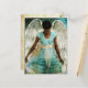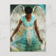 beautiful African American angel in a blue dress , head bowed in gratitude
