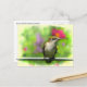 Este cartão-postal apresenta um jovem beija-flor arruinado que ainda não desenvolveu a coloração rubi em sua garganta. Ele está sentado sobre um bar de metal, pronto para mergulhar no néctar das flores que o rodeiam. O fundo é uma paleta suave e adorável de rosa, vermelho, dourado, amarelo e verde.