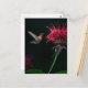 Cartão Postal Hummingbird com garganta de rubi em Bee Balm