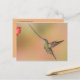 Cartão postal com o espetacular beija-flor de bico-espada a voar numa floresta equatoriana de nuvens, com seu bico longo à procura de uma flor. Belo cartão para amantes de pássaros, animais e natureza. Foto de Guango Lodge, Papallacta, Equador.