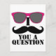 Cartão Postal Humor bigode com óculos escuros cor-de-rosa