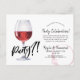 Ele apresenta um clássico copo de vinho aquarelado com as palavras "festa?!" acima dele. Abaixo, há um espaço para suas informações exclusivas.
