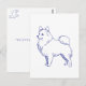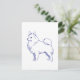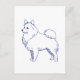 Klassisches Design in Blau-Weiß. Blaue Linienzeichnung der Hunderasse Spitz auf weißem Untergrund.