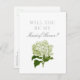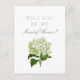 Um cartão de madrinha de casamento para o seu partido noivo, este cartão branco limpo apresenta uma ilustração típica de hydrangea branca e verde, com texto clássico e fácil de personalizar, permitindo que você escolha como "propor" aos membros do seu partido noiva.