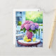 Cartão Postal Hydrangea roxa com limonada em varanda