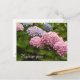Hídrangas elegantes florescem em pinks, mauve e cores azuis suaves acendem este cartão-postal. Um belo cartão postal para um amigo ou para a sua própria coleção.