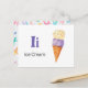 "A letra I é para Sorvete" no nosso conjunto de Placas Flash Alfabet. Obtenha as 26 letras do alfabeto! Um cartão postal de dupla face, excelente para jogos de memória e ensino, orientado para a educação, escolas, professores e escolares de casa para jardins de infância e bebês. Todo o texto é editável se você precisar personalizar.