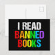 I read banned books. A cool rainbow postcard for people who like reading LGBTQ novels and other things that have been removed from the school library. A cute liberal gift.