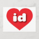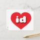 Este cartão-postal apresenta um coração vermelho vibrante contendo a letra maiúscula, branca e arredondada, uma abreviação lúdica para o estado de Idaho, o estado da joia. O reverso do cartão postal é vazio, aguardando seus sentimentos manuscritos ou texto personalizado.