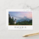 Cartão Postal Igreja com montanhas alpinas no pôr do sol