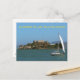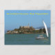 Num dia brilhante, ensolarado, de verão, um veleiro atravessa a Ilha de Alcatraz, na Baía de São Francisco.