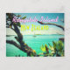 Ilha de Rangitoto, vista com barco. Cartão postal único da Nova Zelândia