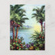 Uma arte de colheita de dominios públicos de uma ilha com palmeiras, flores, oceano e nascente do sol ou por meio de um livro de histórias de bíblias para crianças.