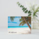 Qualquer um adoraria receber este cartão postal viagem com uma foto do oceano e uma palmeira em uma praia tropical das ilhas Maldivas!