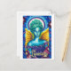Cartaz artístico perfeito para fazer de suas saudações, um tipo! O design de cartão postal de uma fada azul e verde vívida com asas ouros e halo brilhante faz disso um excelente para os entusiastas da fantasia. O cartão postal é vazio na parte traseira, com o logotipo Zazzle pequeno e o logotipo do artista na parte inferior.