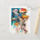 Cartão Postal Ilustração Abstrata em Aquarela de Água-viva