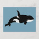 Cartão Postal Ilustração de Baleia Orca Cetáceos Azul