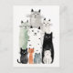 Cartão Postal Ilustração de Gouache de Cats e Amigos
