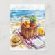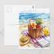Cartão Postal Ilustração de Picnic Watercolor em Summer Beach -