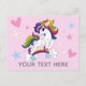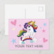 Cartão Postal Ilustração de Unicórnio Rosa Rústico e Estrelas