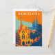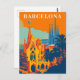 Cartão Postal Ilustração de Viagem Retro de Barcelona Espanha