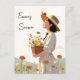 Celebre a beleza do verão com este encantador cartão postal temático de jardim, apresentando uma ilustração sonhadora de uma menina de chapéu de palha segurando uma cesta de flores silvestres. Rodeada por papoulas e céus pastéis suaves, este cartão evoca calma, alegria e calor nostálgico.