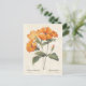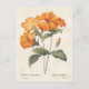 Cartão-postal com uma imagem botânica de cor amarela-laranja-amarelada, limpa e melhorada, também conhecida como Lychnis grandiflora, sobre um fundo de pergaminho de ouro leve. Ilustrado pelo renomado pintor e botânico belga Pierre-Joseph Redouté em 1833. Legendas manuscritas reproduzidas no posicionamento original e fontes semelhantes.