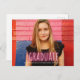 "Formando" no impressão de neon rosa com fundo verde de madeira de boxwood no lado oposto e foto personalizada na frente.