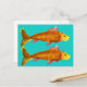 A partir de uma ilustração de arte original de Zoe Tuong de um peixe-dourado de companhia fofo em laranja e amarelo nadando em um tanque ou lagoa. Tema para animais aquáticos para amantes de peixes dourados de estimação e amantes de peixes e hobby de aquário em todo lugar.