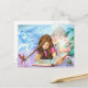 Imaginação, ilustração criativa que mostra uma menina lendo um livro cercado por sua imaginação (apresentando um castelo no topo de uma montanha, um bruxo combatendo um dragão, um unicórnio, uma fada puxando seu cabelo e um pequeno goblin tentando roubar seu anel). Pintura original feita com aquarelas pela artista "Luna" Siffert. Produto personalizável. Você pode adicionar texto e imagens, mudar estilos e tamanhos (dependendo do tipo de produto), etc. Este design também está disponível em outros produtos.