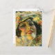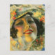 Este cartão-postal apresenta uma bela garota com lábios rubis vermelhos e um lindo chapéu florido. Todos que amam este estilo vintage adorariam receber este cartão-postal.