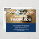 Imobiliário Azul Moderno Obrigado O Cartão-postal apresenta texto moderno e detalhes personalizados em bloco azul.O lado traseiro do cartão-postal tem o modelo de endereço e uma mensagem que pode ser personalizada.Um obrigado perfeito para o seu cartão-postal para o agente imobiliário, contratantes e construtores.Clique no botão personalizar para personalizá-lo no seu próprio texto.