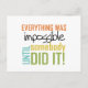 O design de texto multicolorido diz "Tudo era impossível até que alguém o fizesse!" em T-shirts, botões, cartas, canecas, ímanes, correntes-chave e outros itens excelente para professores, treinadores, pais e qualquer pessoa que inspire!