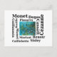 Mosaico de palavras dos principais impressionistas: Bazille, Caillebotte, Cassatt, Cézanne, Degas, Guillaumin, Manet, Monet, Morisot, Pissarro, Renoir, Sisley junto com os icônicos Ninféias de Monet.