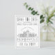 Um cartão postal único para um casamento a acontecer na bela cidade de Indianapolis, Indiana. Este convite apresenta uma ilustração estilizada do horizonte único da cidade com seu nome embaixo. Esta é seguida pelas informações do dia do casamento em um estilo aberto igual. No verso do posto estão as informações de seu endereço. Todos os elementos individuais do cartão de convite estão desbloqueados, portanto, sintam-se livres para alterar todos os detalhes necessários, como tamanhos de fonte, estilos e muito mais usando a função de personalização. Você pode adicionar uma foto ao verso e adicionar um filtro preto e branco a ele.