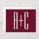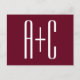 Cartão Postal Iniciais de Casais simples | Branca e Borgonha