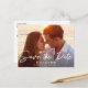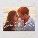 Um casamento fotográfico moderno salve a design do cartão de data com texto editável e letras brancas. Sinta-se livre para personalizar a foto e o texto.